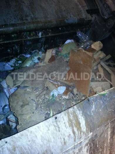 Pasan fuera esa tarde y parte de la noche hasta que se vacían en los camiones del servicio de recogida de la basura de Telde, que gestiona la empresa FCC. Camiones que. dicho sea de paso, llevan estampado en verde el lema Telde recicla. El slogan choca de lleno con un modus operandi que mete en el mismo contenedor madera del ataúd, bloques del cierre de las lápidas, restos de flores, ropas y sudarios.