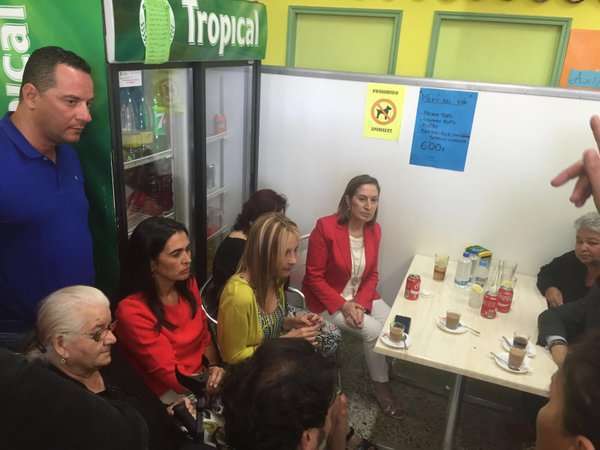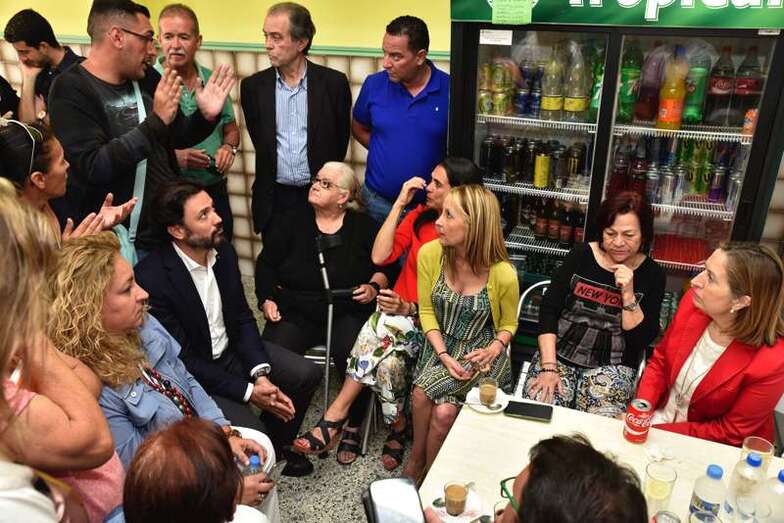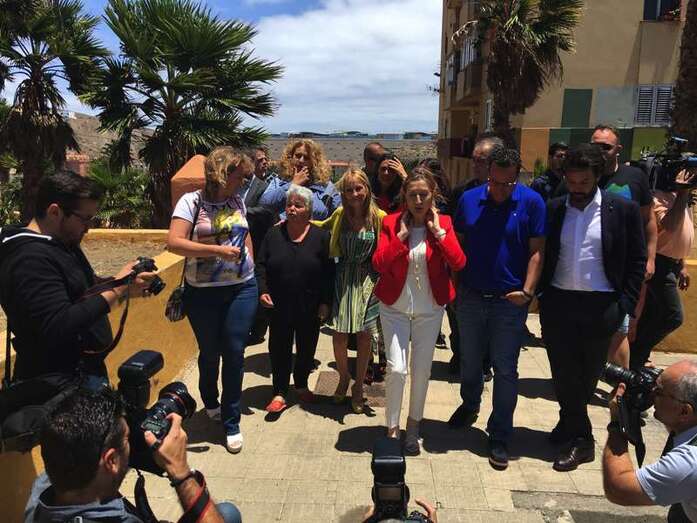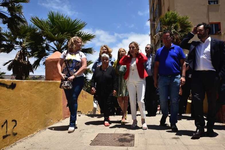 Una numerosa comitiva de los populares canarios acompañó a la ministra en su periplo por el Valle de Jinámar. Una visita en la que Pastor pudo conversar con los vecinos y comprobar
