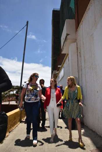 Pastor, acompañada por el presidente autonómico del PP, Asier Antona; la secretaria regional y presidenta del Partido Popular de Gran Canaria, Australia Navarro; la senadora autonómica, Mercedes Roldós; la presidenta del PP de Telde; Sonsoles Martín; y los candidatos al Congreso de los Diputados, María del Carmen Hernández Bento y Guillermo Mariscal; y al Senado; Auxiliadora Pérez y Poli Suárez; fue recibida por los vecinos del Valle de Jinámar, donde el Ministerio de Fomento ha invertido 1,6 millones de euros en el Área de Renovación Urbana (ARU), en su segunda fase.