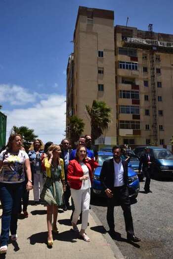 visitó este mediodía el Valle de Jinámar para conocer la segunda fase del Área de Renovación y Regeneración Urbana (ARRU) que desde hace unos meses se lleva a cabo en este sector del municipio. La titular de Fomento aprovechó un viaje a Canarias para realizar este polémico acto de partido que ha sido tildado de electoralista por