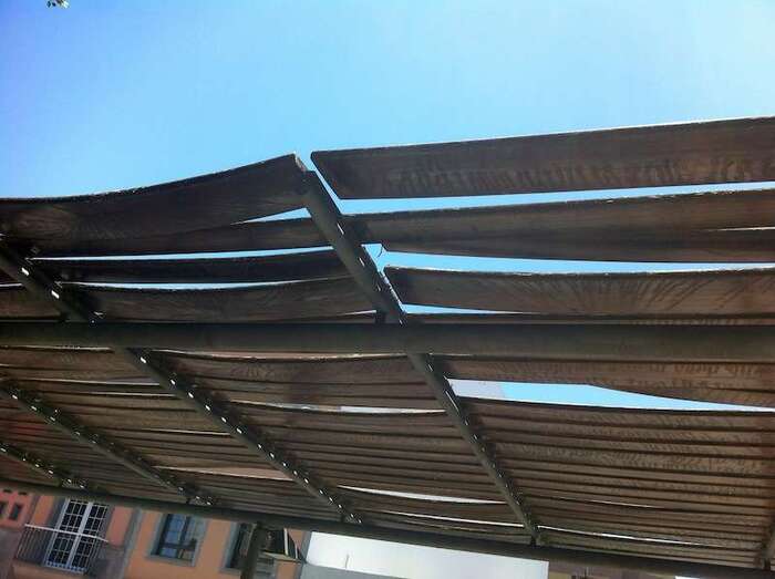 Imagen de una de las deterioradas pérgolas del parque Franchy Roca, antaño punto neurálgico del barrio de Los Llanos (Foto TA) Imagen de una de las deterioradas pérgolas del parque Franchy Roca, antaño punto neurálgico del barrio de Los Llanos (Foto TA)