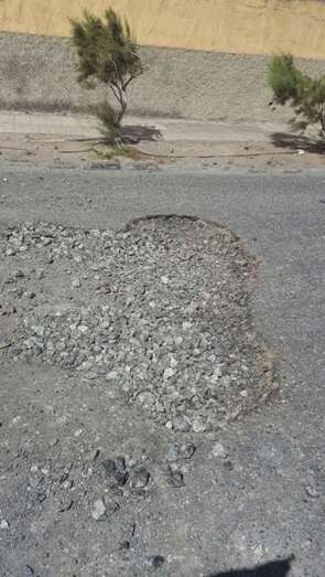 Imagen de uno de los numerosos baches de la carretera de Taliarte (Foto TA) Imagen de uno de los numerosos baches de la carretera de Taliarte (Foto TA)