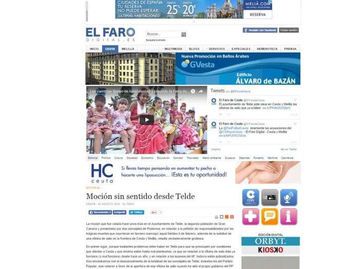 Telde.- Eco de los acuerdos plenarios no tiene fronteras gracias a las nuevas tecnologías de la comunicación. La moción aprobada días atrás a instancias de los ediles afines a Podemos por el Pleno de Telde, de la que TELDECTUALIDAD dio cuenta a los pocos minutos de su debate corporativo, pidiendo la creación de una oficina de inmigración en Ceuta y Melilla ha suscitado críticas en estas ciudades norteafricanas bajo soberanía española. Un editorial del periódico electrónico elfarodigital.es la califica de “moción sin sentido y grotesca”. TA ofrece el editorial del citado diario, remitida a este periódico por un lector habitual en tierras melillenses.