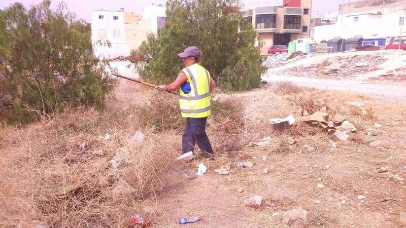 La concejala accidental del área, Saraiba Leal, explica que las tareas en El Goro están centradas en el entorno del centro escolar de este barrio, donde se están eliminando los rastrojos y la basura acumulada, dando respuesta a una demanda del AMPA Cosmos. Este miércoles, añade, se incrementará el número de operarios destinados a estos trabajos con el fin de que puedan concluir en pocos días.