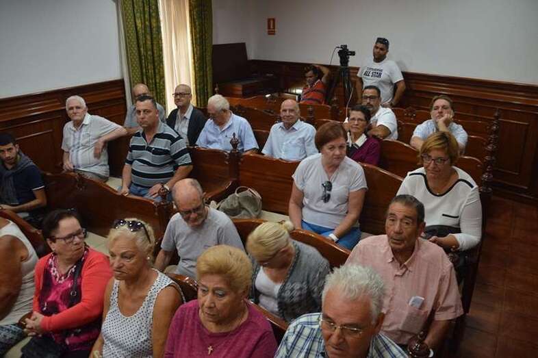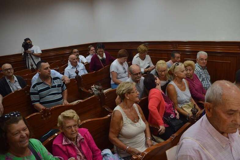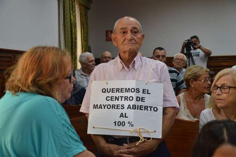 La cita ha comenzado con cinco minutos de retraso. El tripartito compuesto por NC, PSOE y CCD cuenta a priori con tan sólo 11 votos, frente a los 15 de la oposición. Una de las notas más llamativas es la presencia de un grupo de 20 mayores en el patio de butacas que reclama la reapertura total del Centro de Mayores. Uno de ellos porta un cartel, si bien la protesta convocada en su momento por Izquierda Unida ya había sido suspendida.