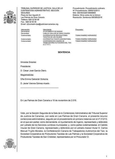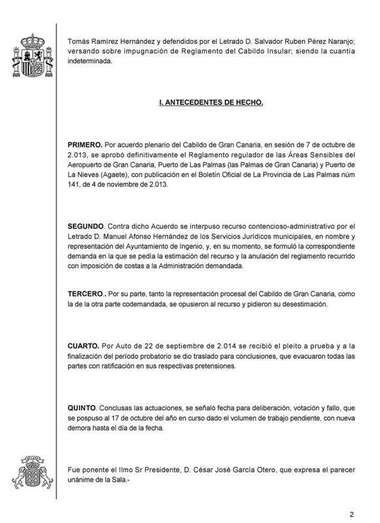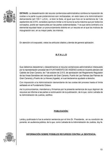 En el fallo de la Sala que preside el magistrado César García Otero, que ofició de ponente, se rechazan todos los motivos de impugnación presentados por el letrado Manuel Afonso Hernández, de los servicios jurídicos del Consistorio de Ingenio, al que como administración demantante se le impone el pago de las costas del proceso judicial. La sentencia no es firme y podrá ser recurrida en casación ante el Tribunal Supremo.