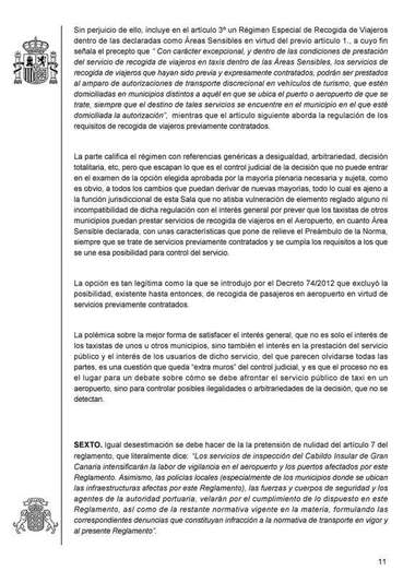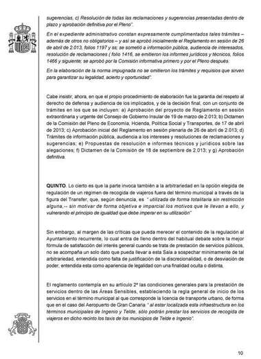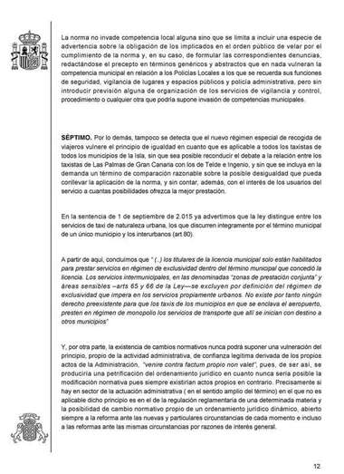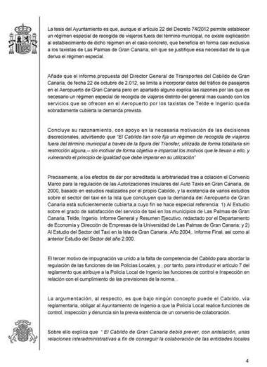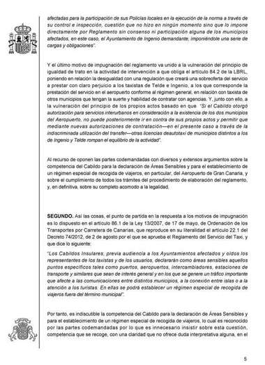 Además, declaran que el nuevo régimen especial de recogida de viajeros tampoco vulnera el principio de igualdad “en cuanto que es aplicable a todos los taxistas de todos los municip0ios de la Isla, sin que sea posible rconducir el debate a la relación entre los taxistas de Las Palmas de Gran Canaria con los de Telde e Ingenio”.