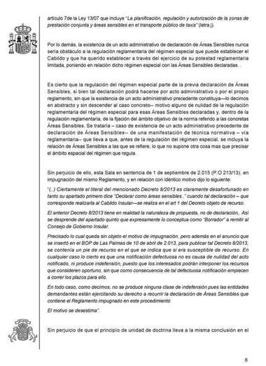 Así, los magistrados refutan la impugnación de que el Pleno del Cabildo invade competencias que no le son propias. Al respecto, manifiesta que es “indiscutible” la competencia del Cabildo para la declaración de Áreas Sensibles y para el establecimiento de un régimen especial de recogida de viajeros, por lo que, sentencian, “que es innecesario insistir sobre esta cuestión”.