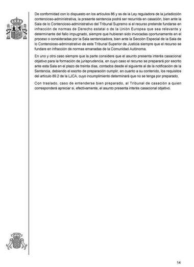 El TSJC impone las costas del proceso judicial, limitado su importe a la suma máxima de 1.000 euros, y declara que la sentencia podrá recurrida en casación ante el Tribunal Supremo, si el recurso se funda en infracción de normas de Derecho Estato o de la Unión Europea, o ante la Sección Especial de la Sala de lo Contencioso-administrativo del TSJ de Canarias “siempre que el recurso se fundamente en infracción de normas emanadas de la Comunidad Autónoma”.