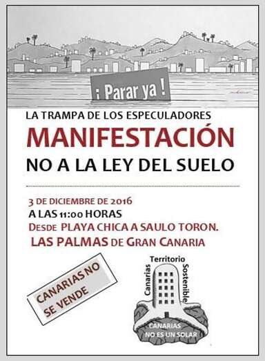Telde.- La Plataforma contra la Ley del Suelo del Gobierno de Canarias mantendrá sus acciones para "tratar de cambiar lo más posible" una norma que considera que "pretende legalizar proyectos especulativos y depredadores del territorio de las Islas", según ha querido poner de manifiesto este sábado, tras la concentración ciudadana que tuvo lugar en la capital grancanaria, al que asistieron varios ediles del Consistorio y conocidas caras del activismo social de Telde.
