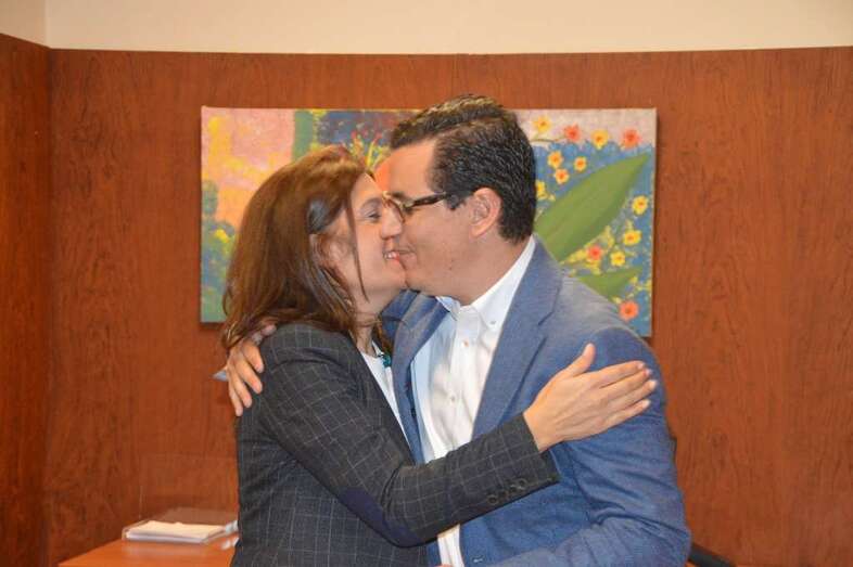 A esta cita se sumaron la concejala Gloria Cabrera y Saro Sosa, la dirigente vecinal que relevará a Rodríguez como cargo electo y miembro del Ejecutivo municipal. Hernández y Sosa se fundieron en un fraternal abrazo y se mantuvieron cogidas de una mano durante buena parte de la conversación cordial que entablaron en el despacho de la primera.