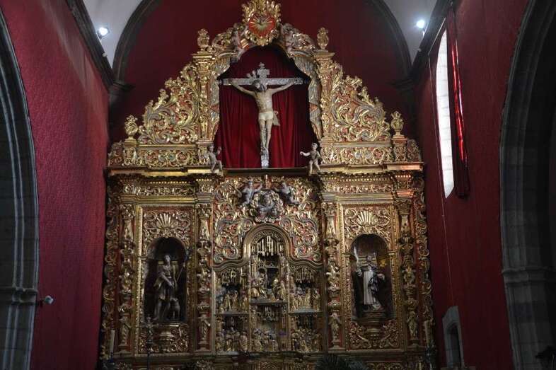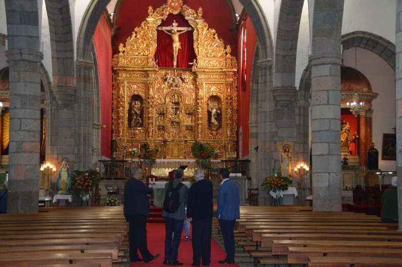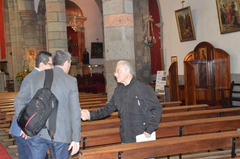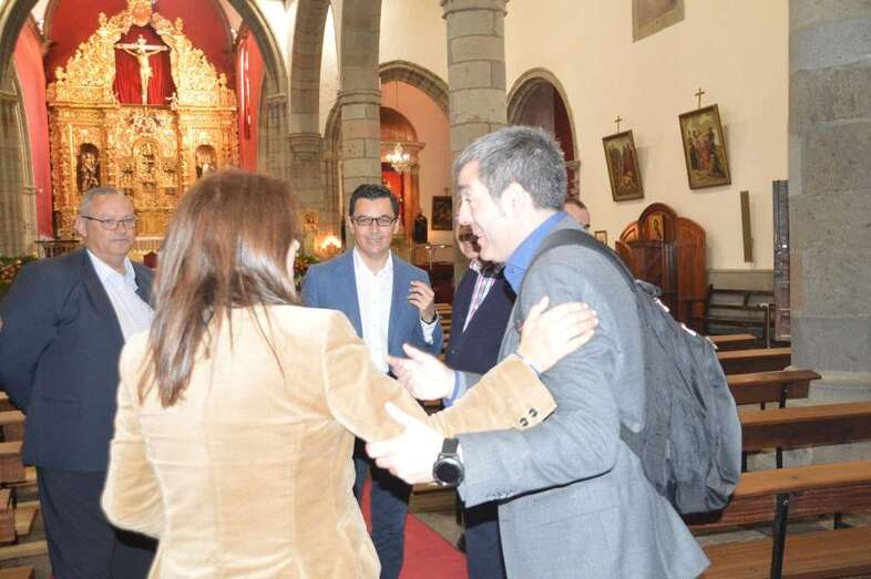 A eso de las 9.30 de la amañana, el máximo dirigente canario descendió de su vehículo oficial y puso un pie en la plazuela sanjuanera. Con su peculiar mochila negra al hombro y acompañado por su vicepresidente y consejero de Obras Públicas y Transportes, el teldense Pablo Rodríguez, Clavijo se adentró en la Basílica y templo matriz de Telde con el propósito de ver la bella escultura del Cristo de Telde. En la iglesia recibió las explicaciones de su historia y valores históricos por Laureano Betancor, colaborador de la Parroquia de San Juan.