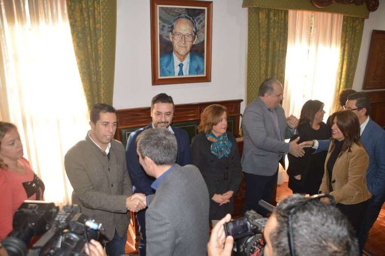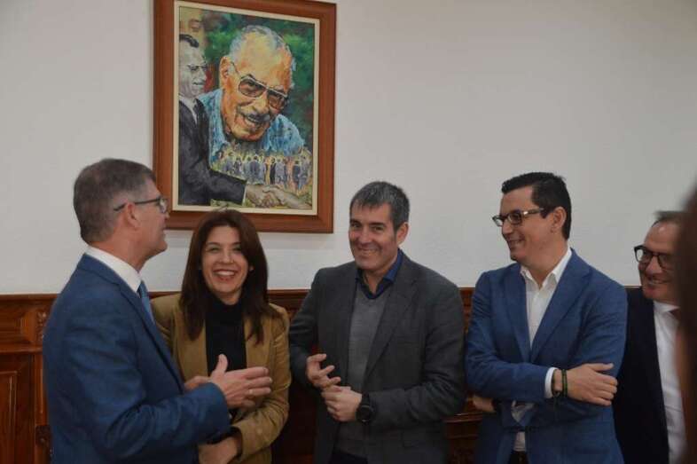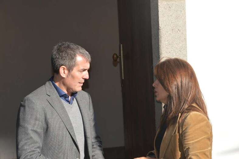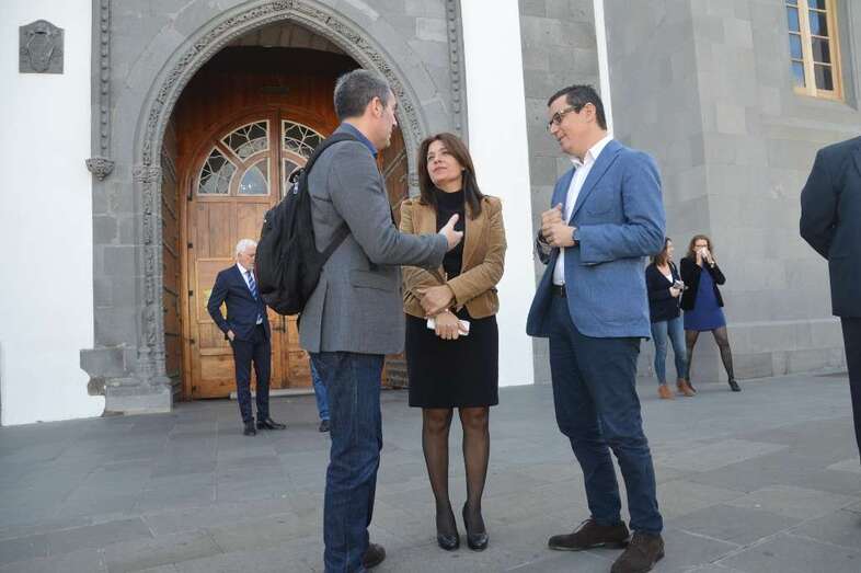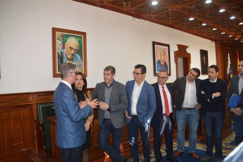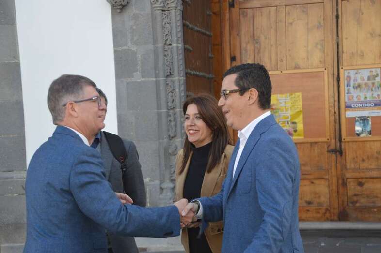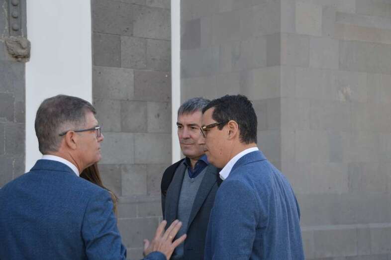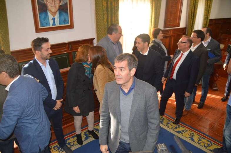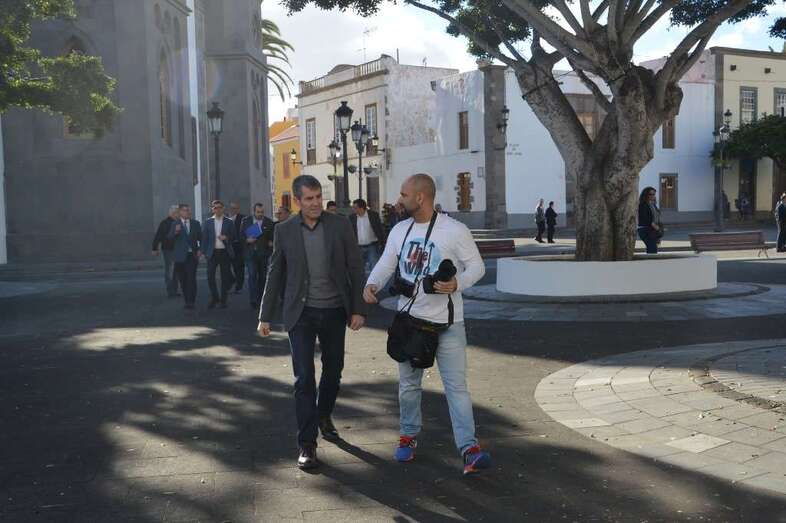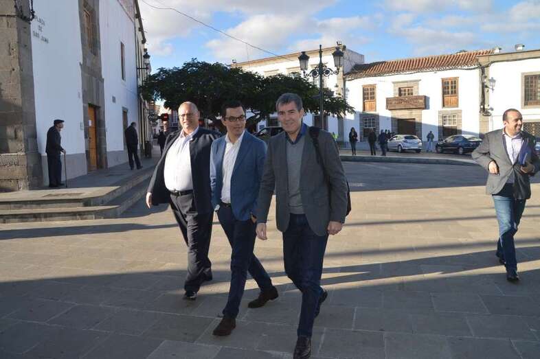 Más tarde, y al abrigo de los centenares laureles de indias que presiden de la plaza, el grupo se abrió paso hasta las Casas Consistoriales de San Juan, epicentro de la visita de este martes. Atento a las explicaciones del cronista oficial de la ciudad, Antonio María González Padrón, Clavijo recorrió el Salón de Plenos, donde tuvo la oportunidad de saludar a los portavoces de los grupos político. Después de firmar en el libro de honor, Clavijo y su equipo mantuvo un encuentro de trabajo con la alcaldesa Carmen Hernández y los portavoces del Gobierno. Cita a la que también se ha sumado el director general de Infraestructura Turística del Ejecutivo regional, el también teldense Héctor Suárez.
