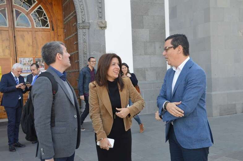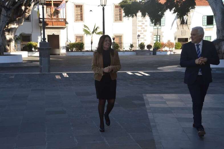 La alcaldesa de Telde, Carmen Hernández, se unió minutos después a la comitiva y junto con Rodríguez ejerció de cicerone.
