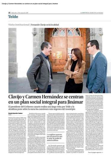 Los dos periódicos regionales editados en Gran Canaria dedican amplias referencias a la presencia de Clavijo en la ciudad, donde, tal y como adelantó TELDEACTUALIDAD, Gobierno canario y Ayuntamiento acordaron que el Valle de Jinámar sea pionero para una política social menos asistencialista.