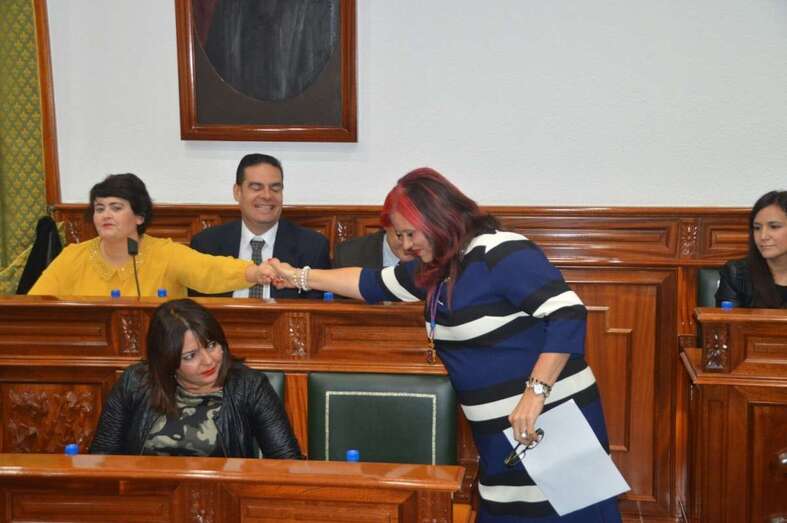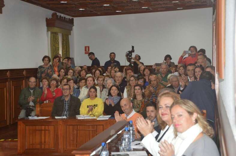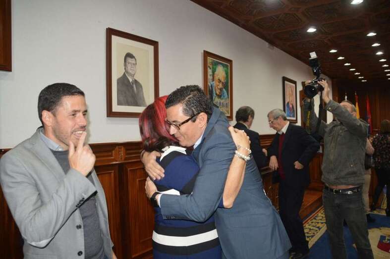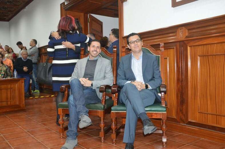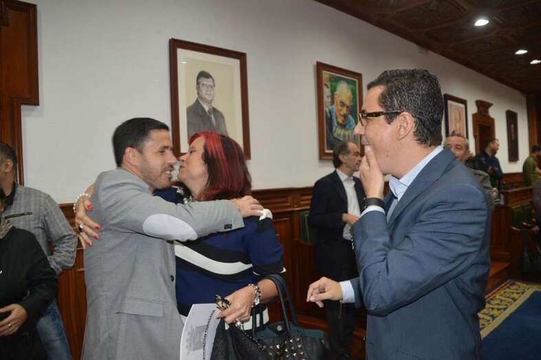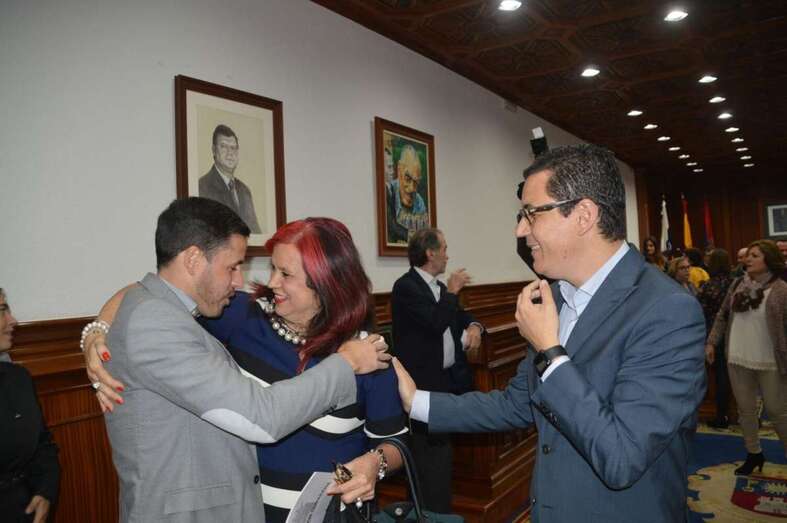 Tras prestar juramento, Saro Sosa recibió las felicitaciones de los portavoces de la práctica totalidad de los grupos municipales. Todos ellos coincidieron en significar su trayectoria e incansable compromiso social al frente de la Asociación de Vecinos El Roque Azucarero de Los Llanos.