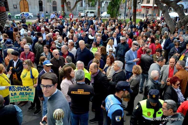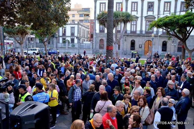 A la concentración, durante la cual el expresidente de los Tribunales Superiores de Justicia de Canarias y de Madrid, José Mateo Díaz, hijo predilecto de Gran Canaria, ha leído un manifiesto, han asistido alcaldes de numerosos municipios de Gran Canaria.