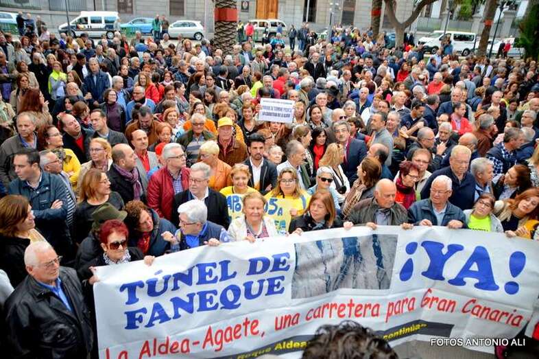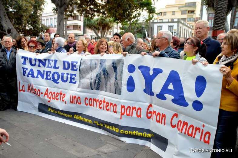 Telde.- Ciudadanos y representantes de todas las administraciones y partidos políticos se han concentrado este martes en el parque de San Telmo de Las Palmas de Gran Canaria, para exigir que se agilice la construcción de la nueva carretera La Aldea-Agaete, convocados por el Foro Aldeano. En la protesta hubo una amplia representación de Telde. TA ofrece un amplio reportaje gráfico.