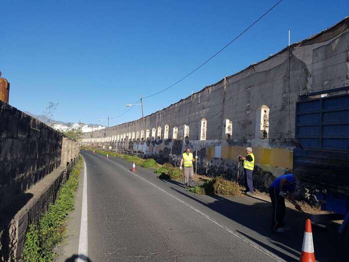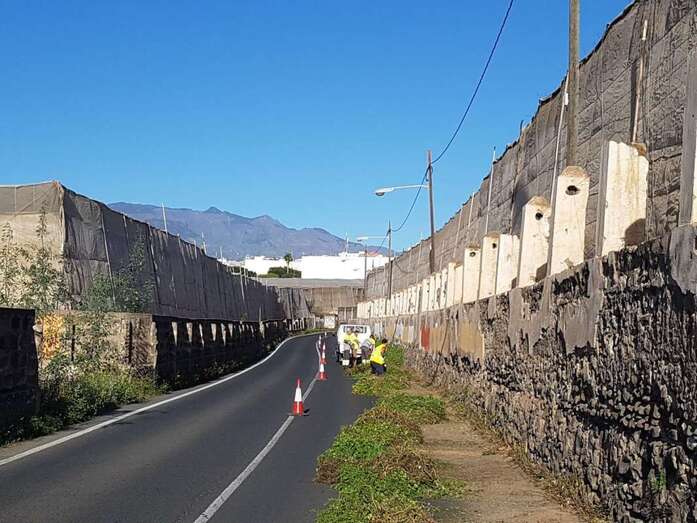 Trabajos de limpieza de los márgenes de la estrecha carretera de Melenara (Foto TA) Trabajos de limpieza de los márgenes de la estrecha carretera de Melenara (Foto TA)