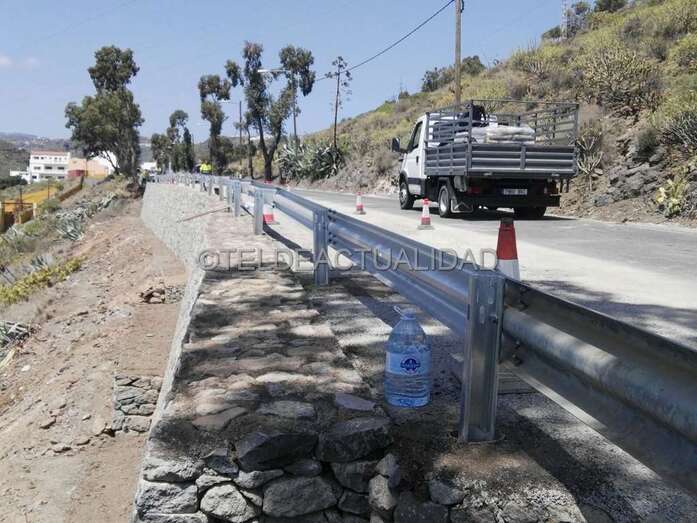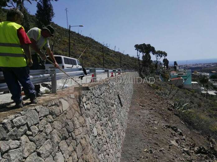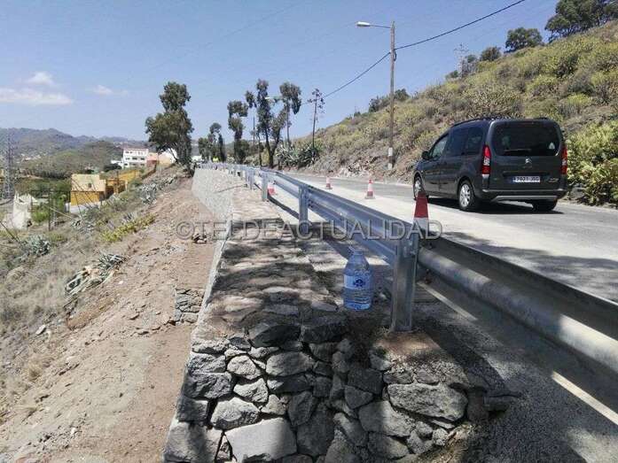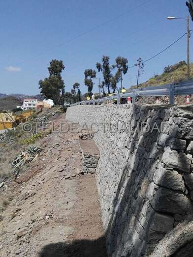 Tal y como avanzó TELDEACTUALIDAD, las obras ejecutadas han consistido en la construcción de un muro de mampostería de 60 metros de longitud y una altura de 4,5 metros para evitar los movimientos de la plataforma de la carretera, que carece de un muro que soporte el talud lo que genera inestabilidad y la aparición de grietas, además del refuerzo del firme en todo el ancho del vial afectado y la colocación de nuevas barreras metálicas.