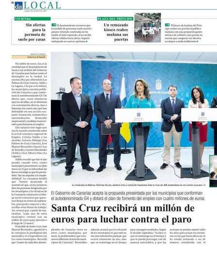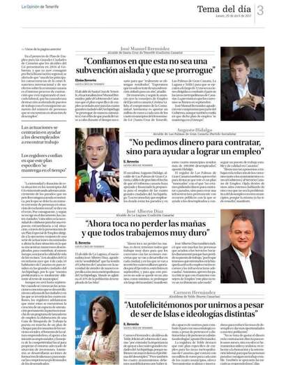 Hernández felicitó al Gobierno de Canarias “por entender la importancia de apoyar a las cuatro grandes ciudades del Archipiélago, porque sufrimos con mayor dureza el problema del desempleo”. “Pero también los cuatro ayuntamientos debemos autofelicitarnos por haber sido capaces de unirnos para combatir el paro con una estrategia común, a pesar de pertenecer a distintas Islas y de pertenecer a distintas ideologías”, apuntó Hernández.