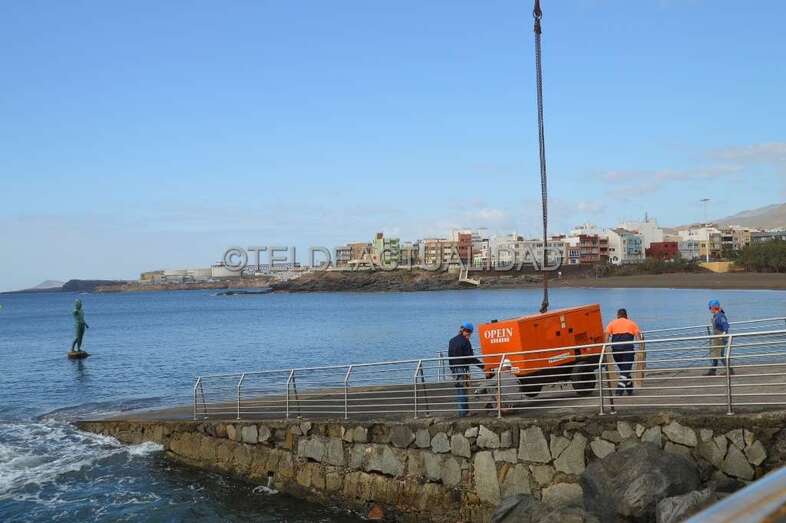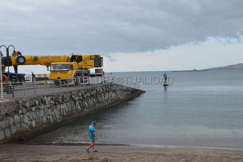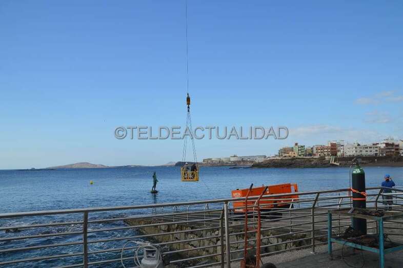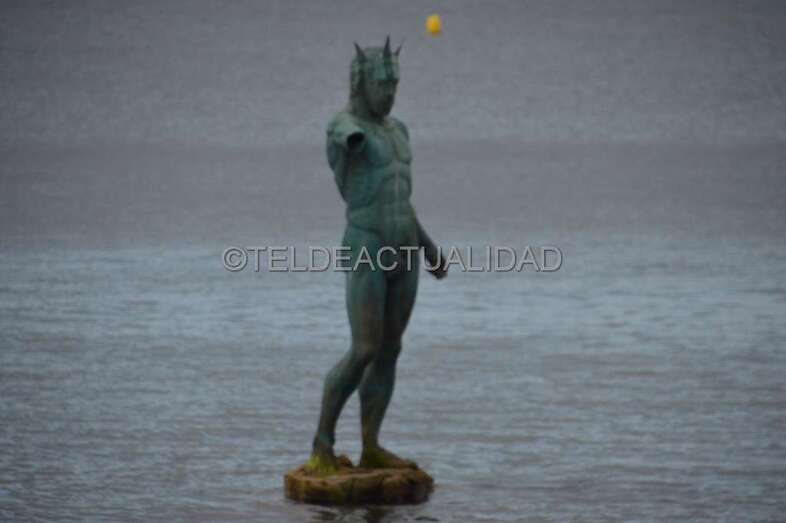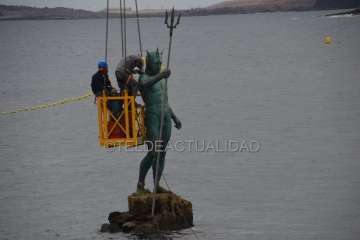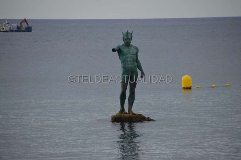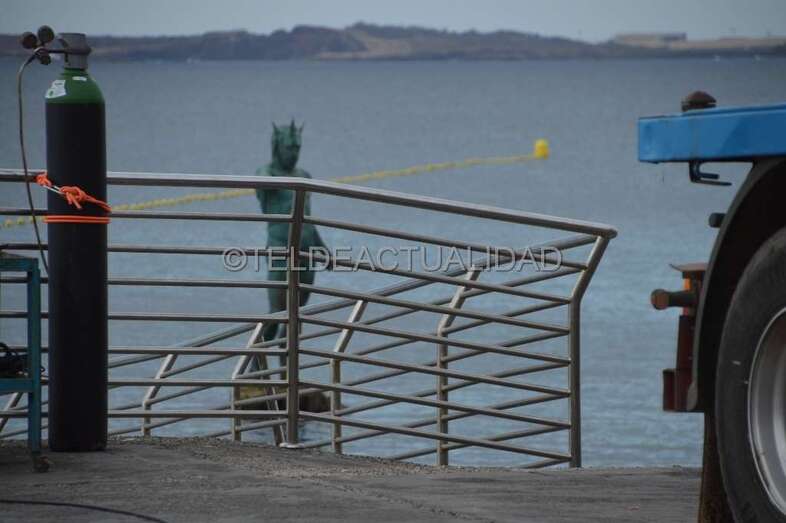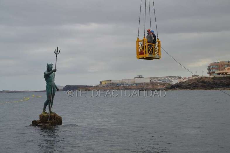 Telde.- La escultura de Neptuno de Melenara, situada en el Puntón, recobró este jueves el brazo y el tridende que perdió durante un temporal de mar ocurrido hace más de seis años.