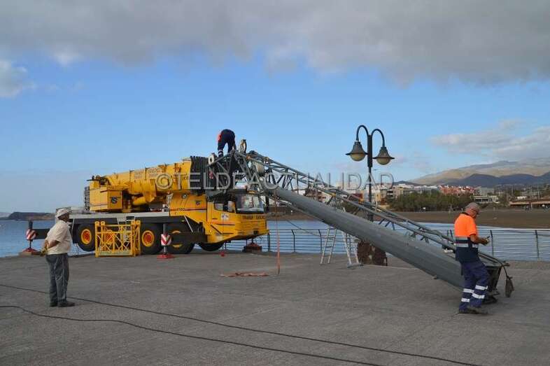 Luego, a primera hora de la tarde, volvieron al Puntón para coser todo el brazo, con un peso de más de 60 kilos, a la obra magna del escultor teldense Luis Arencibia Betancor, que no pudo estar presente durante el proceso que comenzó a las 8 de la mañana y que se prolongó hasta bien entrada la tarde de este jueves. Al filo de las 17.15 horas, finalizarían los trabajos con la soldadura de la empuñadura del báculo.