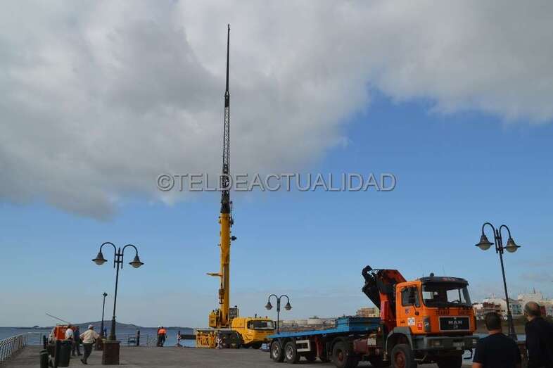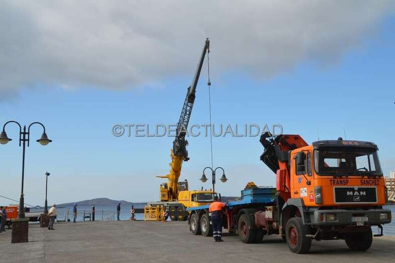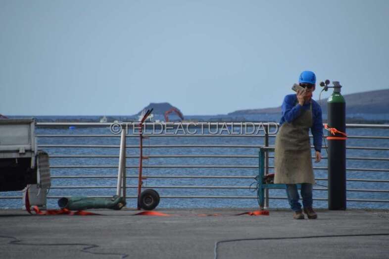 Al mediodía, la alcaldesa Carmen Hernández se acercó también al muelle de Melenara para interesarse por el desarrollo de los trabajos.