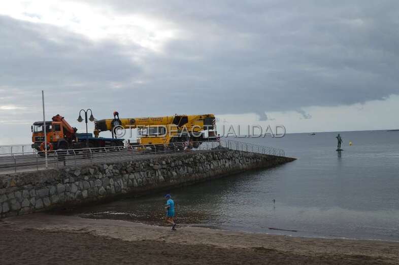 El estado del mar, casi plano y sin oleaje, y la ausencia casi total de viento ayudaron al desarrollo de la tarea de reparación de la escultura, una intervención que se había pospuesto en las últimas semanas debido precisamente a que las condiciones meteorológicas no eran las más adecuadas.