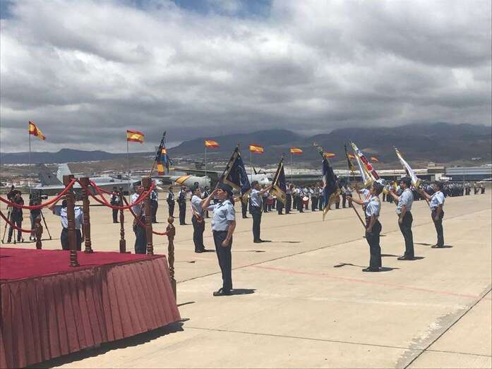 Una ceremonia a la que también acudieron otras autoridades civiles y militares, como la delegada del Gobierno en Canarias, Mercedes Roldós, o el jefe del Estado Mayor del Ejército del Aire, Javier Salto Martínez-Avial (quien anteriormente también asumió la dirección del Macan), y en la que las diferentes unidades del Ala 46 con base en Gando rindieron honores al general de la Cruz Caravaca.