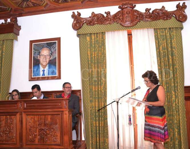 Telde.- La profesora y columnista de TELDEACTUALIDAD, Nieves Rodríguez, fue la encargad de leer este viernes en el Pleno ordinario de mayo el manifiesto institucional contra la violencia de género.