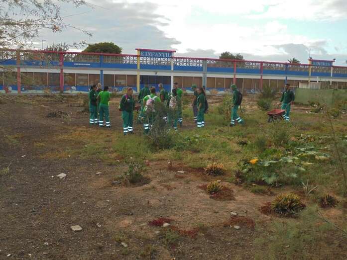 Telde.- Los alumnos-trabajadores del Proyecto de Formación en Alternancia con el Empleo (PFAE) Buganvilla están creando estos días un jardín junto a los huertos urbanos de Las Remudas. Iniciativa que forma parte de las acciones prácticas que desarrollan para complementar su formación.