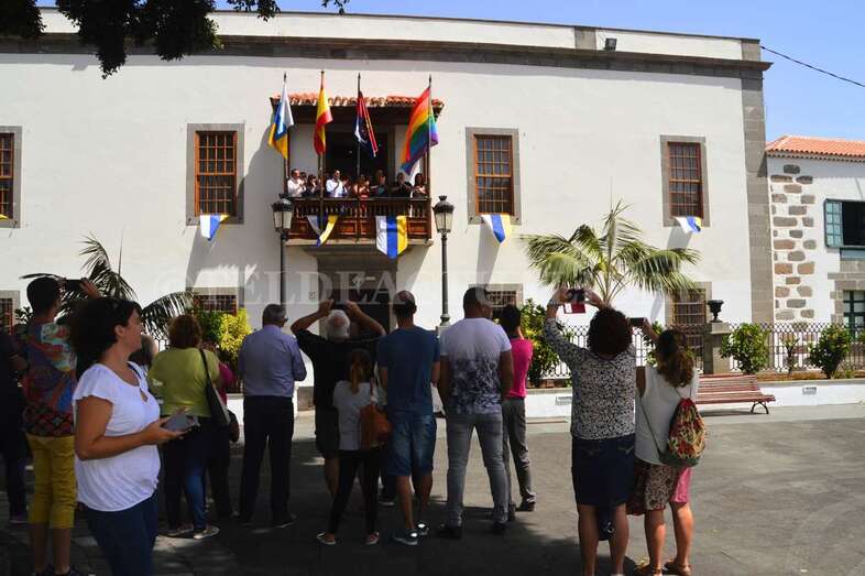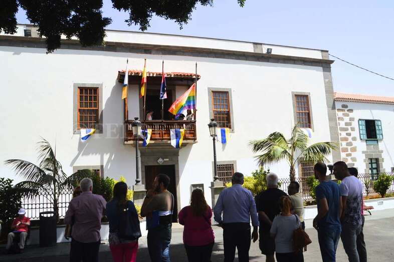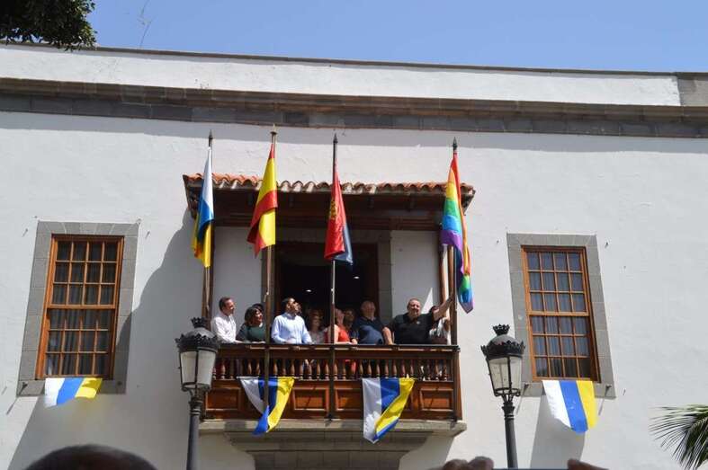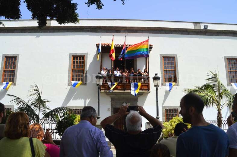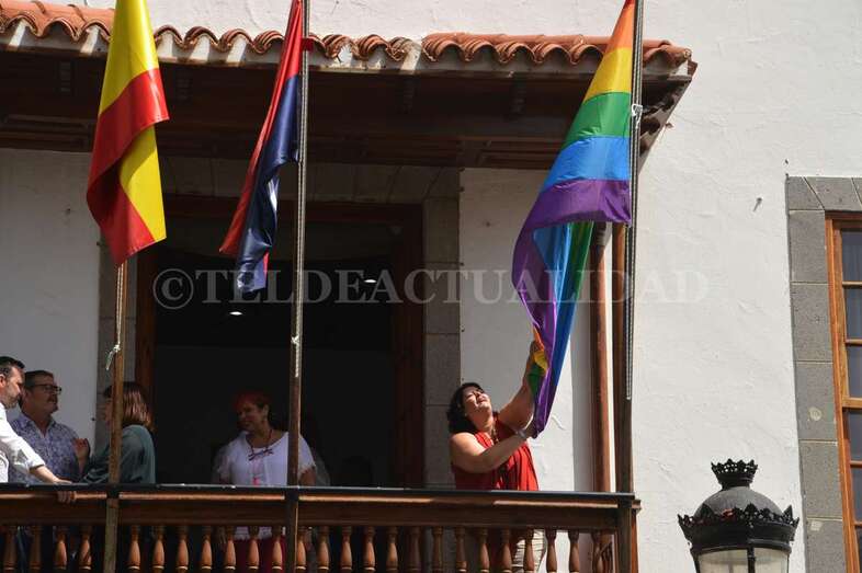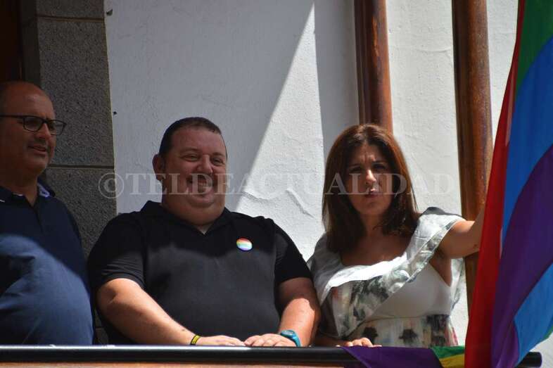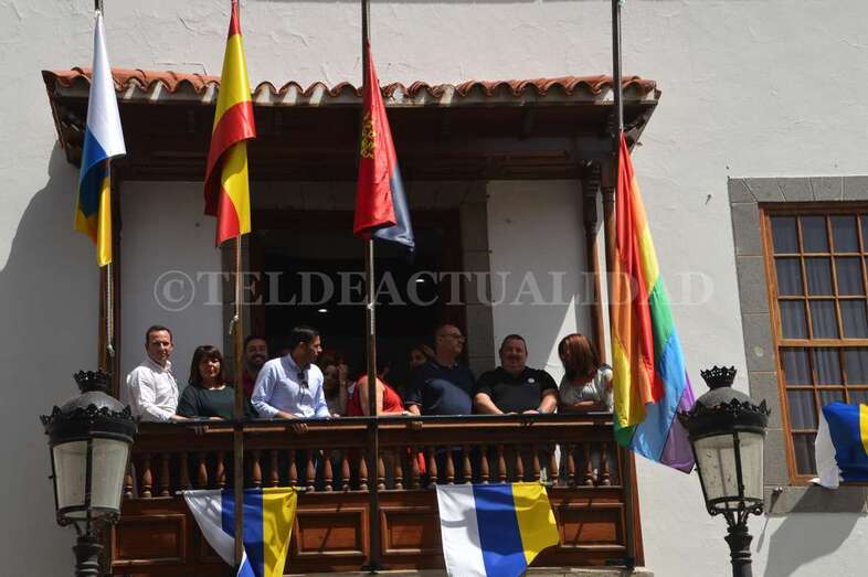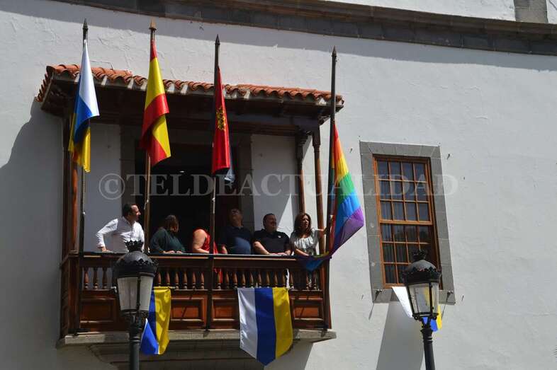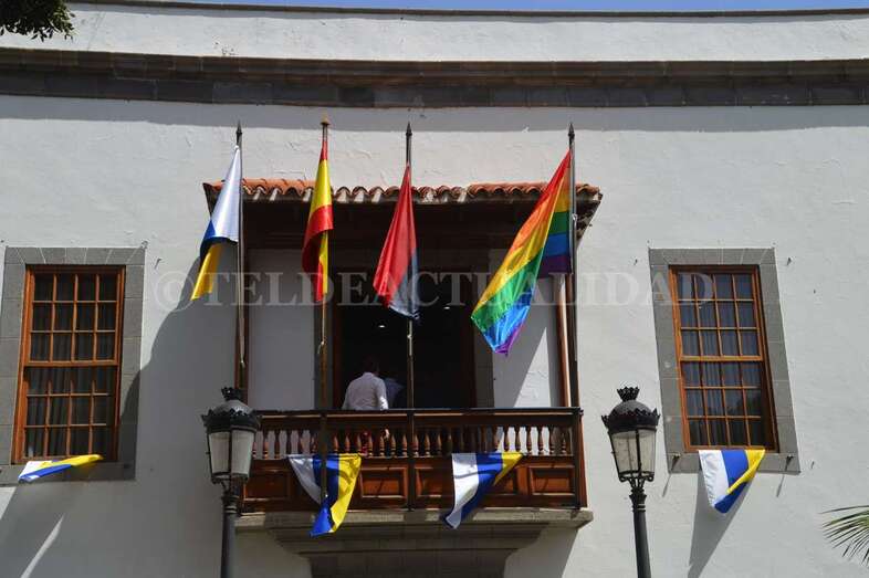 La enseña multicolor, símbolo a nivel mundial de la libertad y el respeto hacia la diversidad sexual, ya ondea junto a las banderas oficiales de Telde, Canarias y España en el balcón de las Casas Consistoriales de San Juan, después de que este mediodía se procediera a su izado en un acto que estuvo presidido por la alcaldesa Carmen Hernández y que contó con la participación del secretario del colectivo Gamá en Las Palmas de Gran Canaria, Nacho Pérez, y de concejales de buena parte de las fuerzas con representación en el Consistorio teldense.