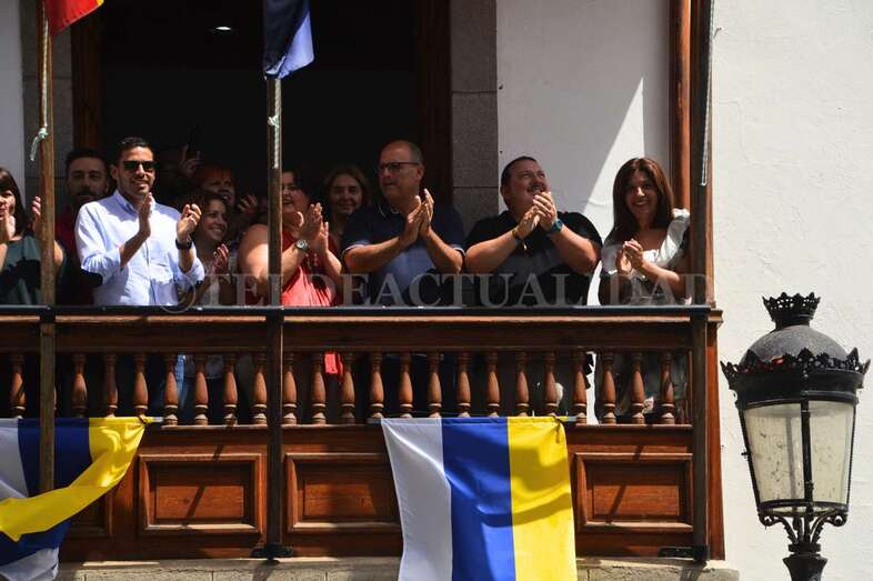 También acudió el director general de Infraestructuras Turísticas del Gobierno de Canarias, el teldense Héctor Suárez, que quiso acompañar a la Corporación local desde el balcón.