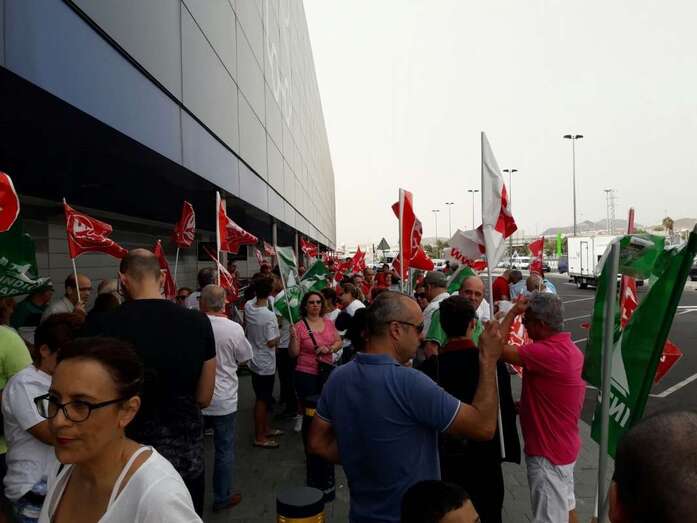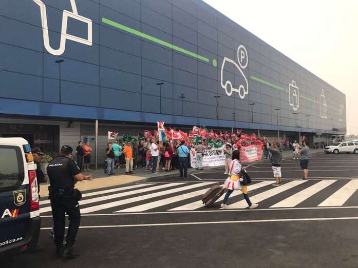 Telde.- Más de 150 personas se han concentrado este viernes delante de la terminal del aeródromo de Gando para protestar con gritos y pancartas contra la pretensión de Aena de dividir los puntos de restauración del aeropuerto.