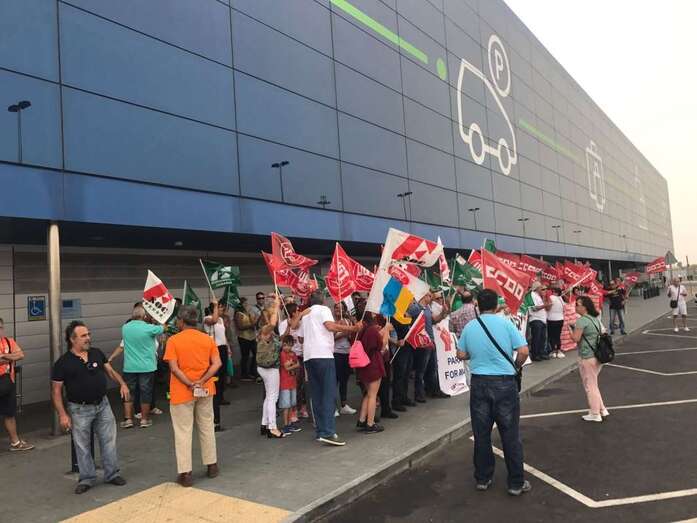 Minutos antes de la protesta, el PSOE de Telde hizo público su apoyo a los trabajadores de restauración del Aeropuerto de Gran Canaria en su lucha contra los pliegos de los centros de trabajo de hostelería dentro de las instalaciones en las que que AENA pretende dividir los puntos de venta.