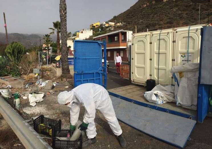 Telde.- Una empresa especializada en el tratamiento de materiales con amianto llevó a cabo la pasada semana un plan de choque por los seis distritos de la ciudad para retirar materiales con este peligroso elemento, considerado un agente cancerígeno y desencadenante de enfermedades respiratorias, cuyo uso está prohibido desde hace más de una década por la Unión Europea.