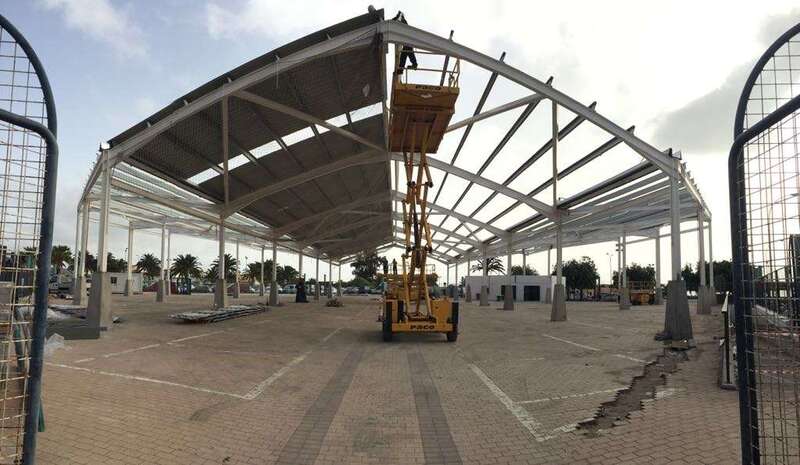 Telde.- Los trabajos para la remodelación del área polivalente de Narea -una de las obras incluidas por el Ayuntamiento de Telde en el Plan de Cooperación del Cabildo de Gran Canaria- sigue avanzando a buen ritmo y encaran ya su tramo final, después de que haya empezado a colocase la cubierta de chapa de unos 3.000 metros cuadrados que techará gran parte del recinto.