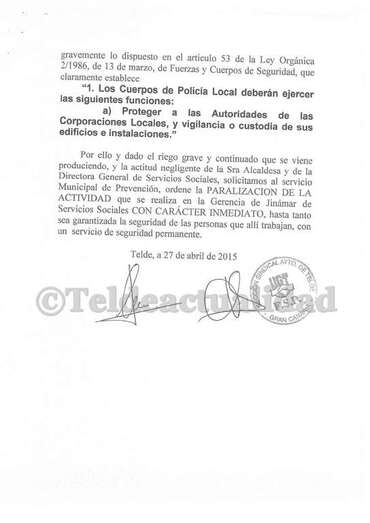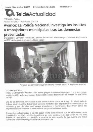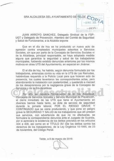El sindicato acompaña a su denuncia fotocopia de la información publicada por TELDEACTUALIDAD sobre los hechos ocurridos en la UTS de Jinámar y Alcaldía.