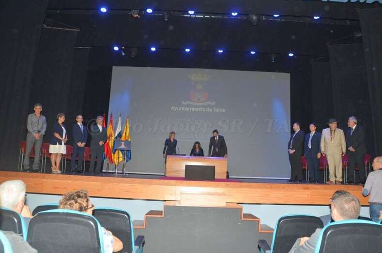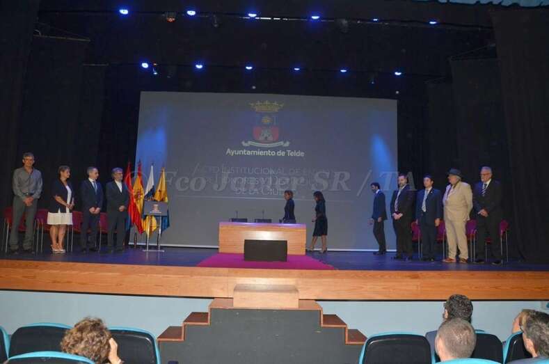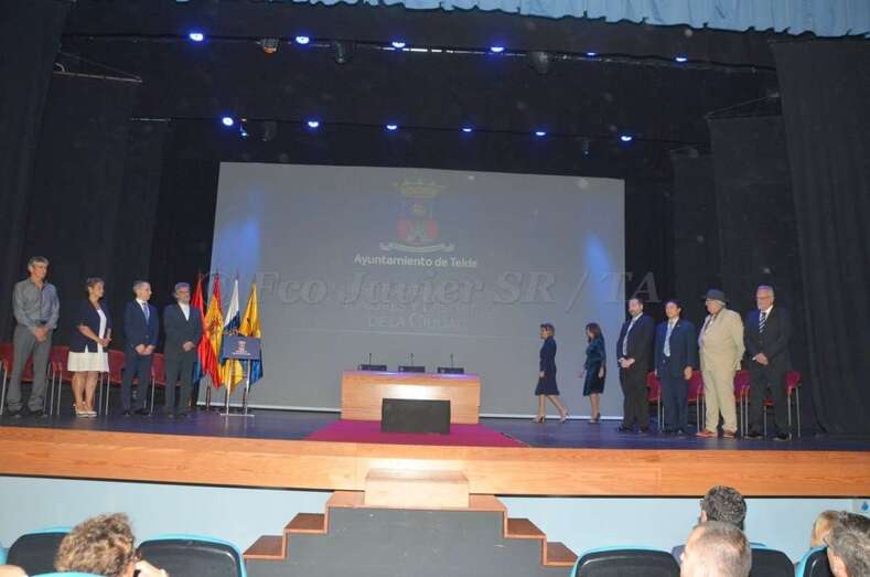 Una ceremonia muy emotivo a la vez que solemne que esta noche se celebró en el Teatro Municipal Juan Ramón Jiménez, reuniendo a lo más granado de la sociedad teldense, a la práctica totalidad de la Corporación local y a una nutrida representación de autoridades civiles y militares del Archipiélago; entre ellos el vicepresidente del Gobierno de Canarias, el teldense Pablo Rodríguez.