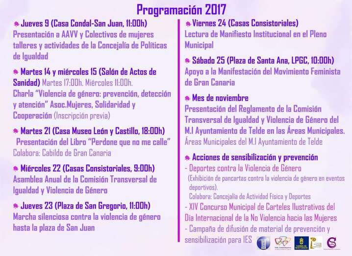 Otras actividades que se desarrollarán en este mes serán la colocación de pancartas contra la violencia de género en eventos deportivos, la convocatoria del XIV Concurso de Carteles Ilustrativos del Día Internacional de la No Violencia hacia las Mujeres y una campaña de difusión de material de prevención y sensibilización entre el alumnado de los institutos de Telde.