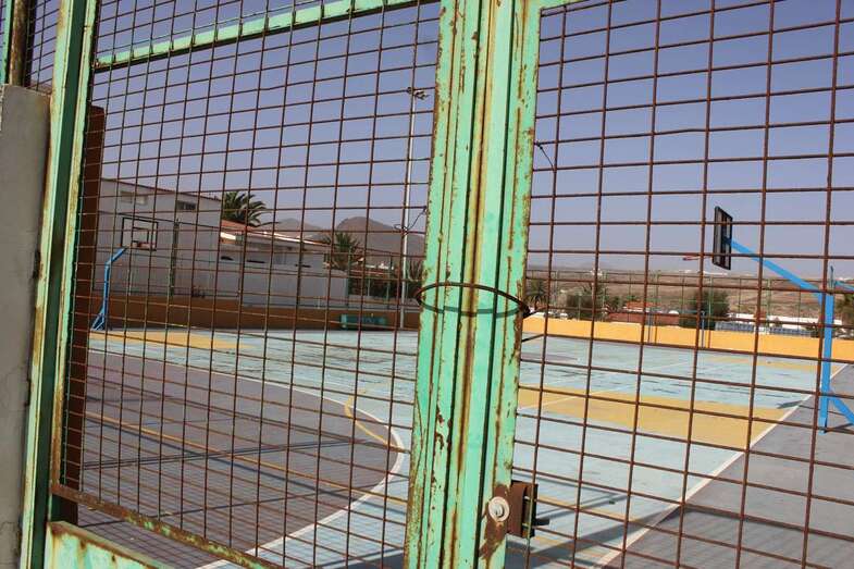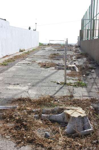 La zona residencial tiene su cancha deportiva en pésimo estado y cerrada, mobiliario urbano roto y aceras impracticables, muros caídos etc.