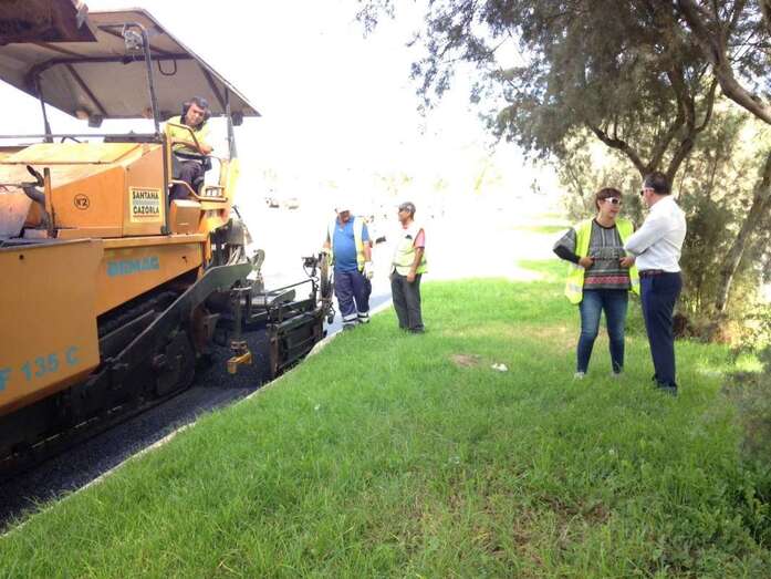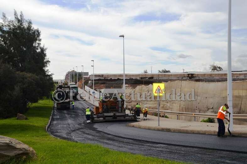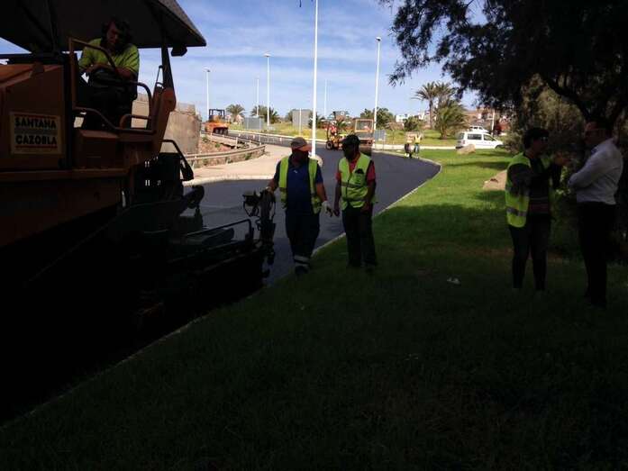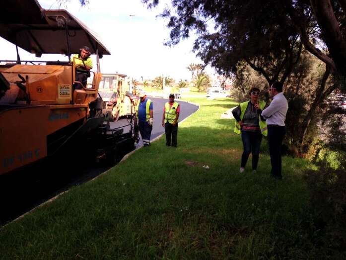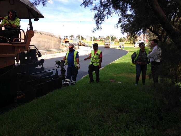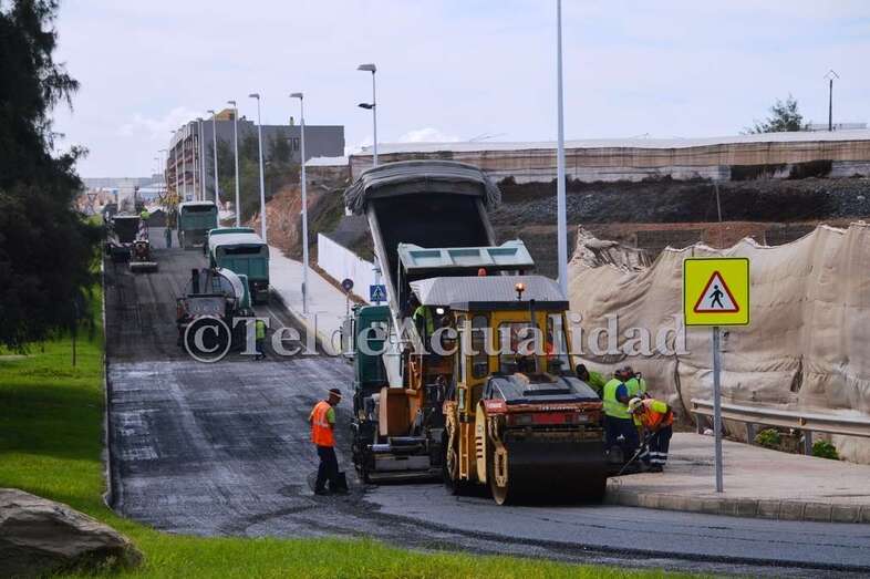 Un manto de asfalto comienza a cubrir la calle de Américo Vespucio, la vía principal que comunica Melenara, Clavellinas y Salinetas. Un pequeño ejército de máquinas y personal de la UTE que conforman las empresas Petrecan y Hermanos Santa Cazorla tomaban desde primera hora esta frecuentada arteria viaria del litoral teldense.
