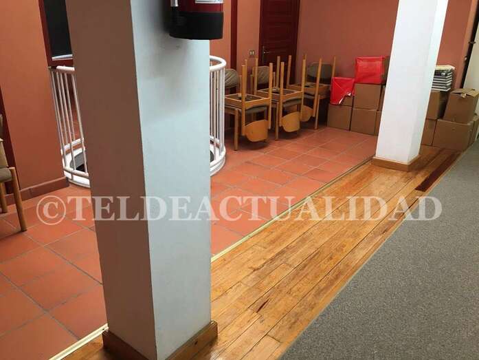 Paredes agrietadas, baldosas levantadas, un toldo exterior del que solo queda su esqueleto, moquetas deshilachadas que no se sustituyen desde hace años, luminarias que ya no encienden, un suelo de madera que se hunde y provoca ruidos al caminar sobre él, una sala central que presenta problemas de insonorización o cables al descubierto en los que uno se enreda al subir por las escaleras son solo algunos de los desperfectos de lo que adolece y que mantien en vilo a los visitantes.