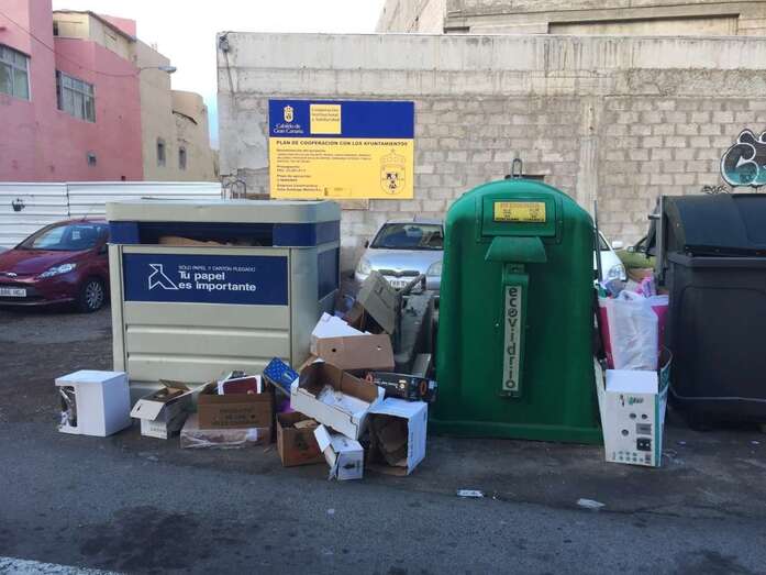Telde.- Izquierda Unida Canaria de Telde denuncia la falta de planificación de un servicio de refuerzo en la recogida de basura en la zona comercial de Los Llanos, donde los residuos se amontona en sus calles.