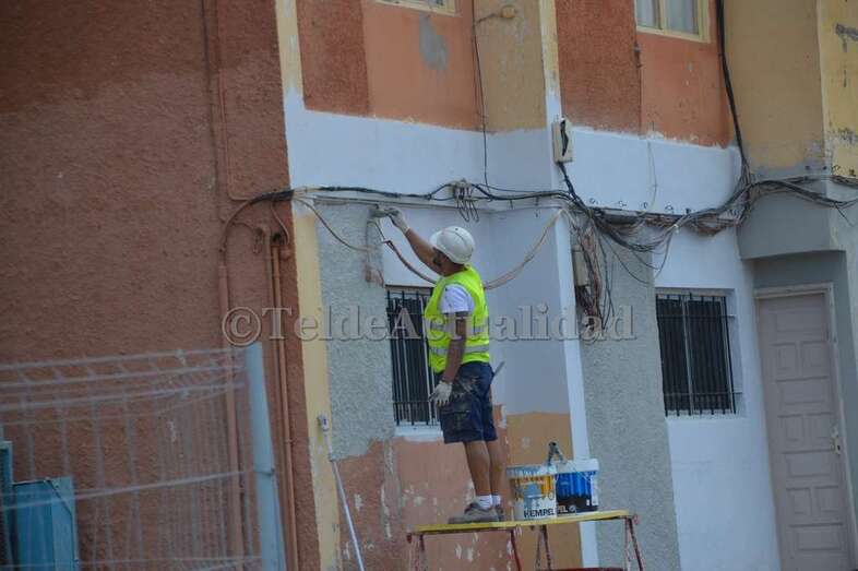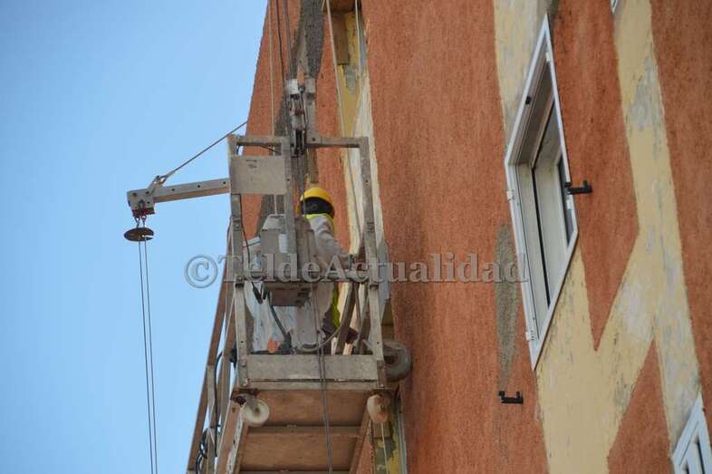 Pinturas y Reformas Montelongo S.L., a quien Fomentas adjudicó los trabajos por un importe de 619.290 euros, está cumpliendo los plazos establecidos. Los avances ya se palpan tanto en el interior como en el exterior de estos dos desvencijados bloques ubicados en la subida a la Loma de Taliarte, que datan de agosto de 1972 y que hasta ahora, salvo alguna actuación de pintura, no se había sometido a reforma alguna.