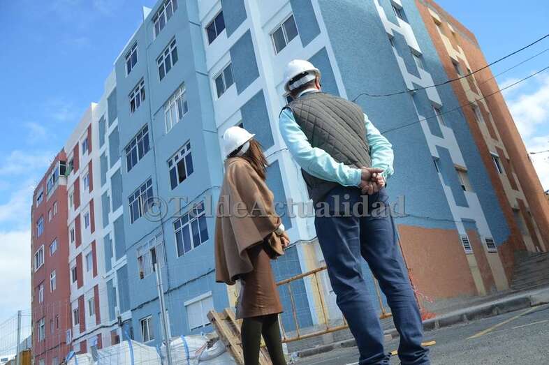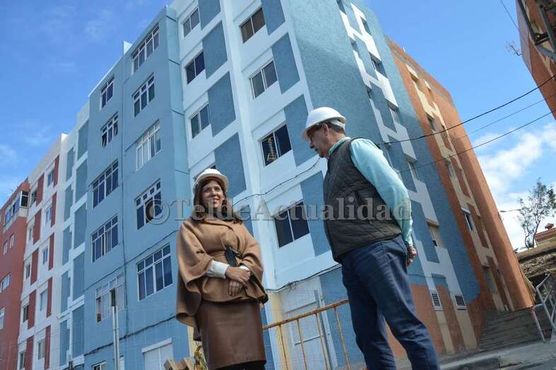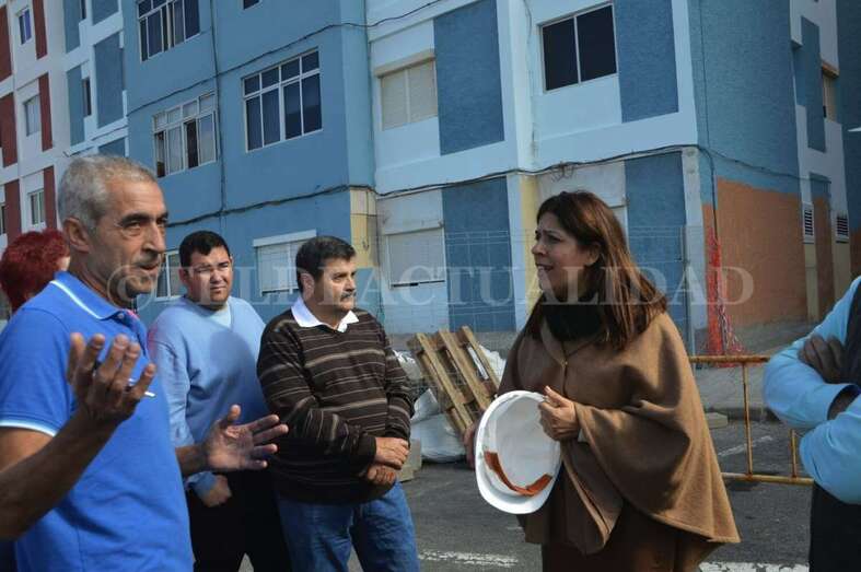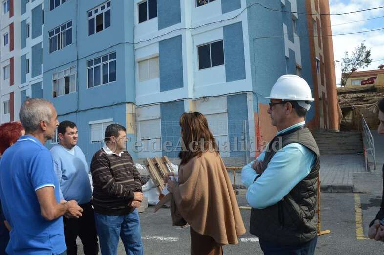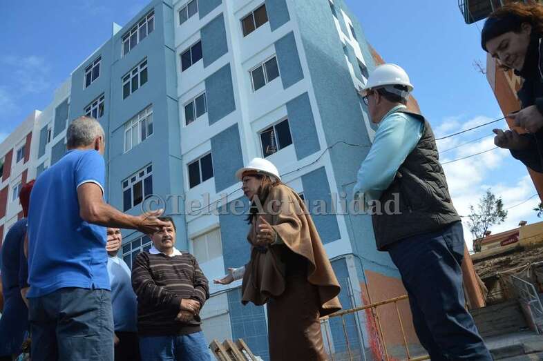 La alegría se respira entre las 132 familias que los habitan, como así se lo hicieron saber los propios vecinos a la primera mandataria teldense durante la visita que Carmen Hernández (NC) giró este miércoles a las obras. “Están trabajando a piñón. Son auténticos profesionales”, comentaban algunos de los residentes.