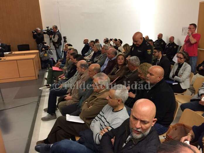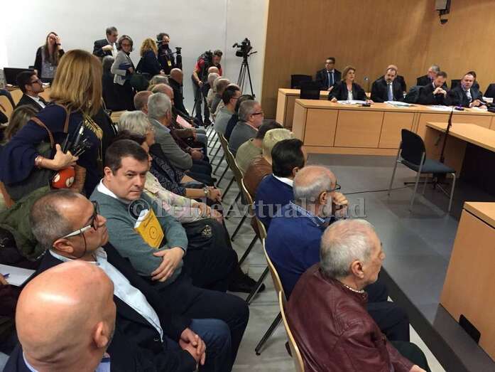 A las 10.03 horas todos los acusados se encontraban ya en las inmediaciones de la sala donde se va a celebrar el jucio. Los dos hijos de Toñi Torres fueron los últimos en llegar. A los pocos minutos comenzaron a ser llamados uno a uno para entrar en la sala de la vista oral. Entre los acusados, que hablaban entre ellos, predominaban los rostros serios, aunque entre algunos de sus letrados imperaban el optimismo. Luz Navarro, denunciante de la supuesta trama es la única persona que se hallaba algo aislada del resto. Ya en la sala, la exprimera mandataria municipal, Mari Carmen Castellano, está sentada junto al exjefe de Urbanismo, José Luis Mena.