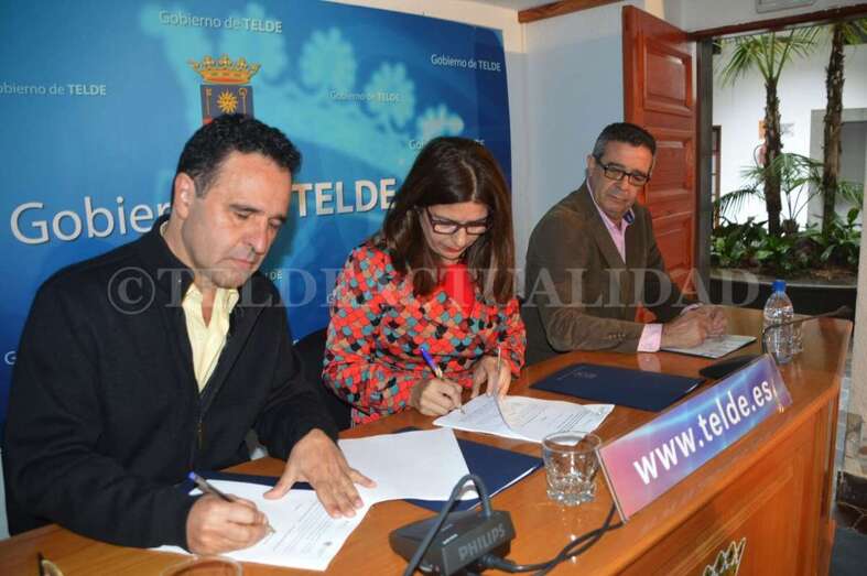 La alcaldesa Carmen Hernández, el director territorial de Aldeas Infantiles SOS en Canarias, Francisco Javier Perdomo; y el gerente de la empresa municipal Fomentas, Carmelo Ramírez; fueron las personas encargadas de estampar su firma en el convenio, en una rueda de prensa celebrada esta mañana y que tuvo como marco las Casas Consistoriales de San Juan.