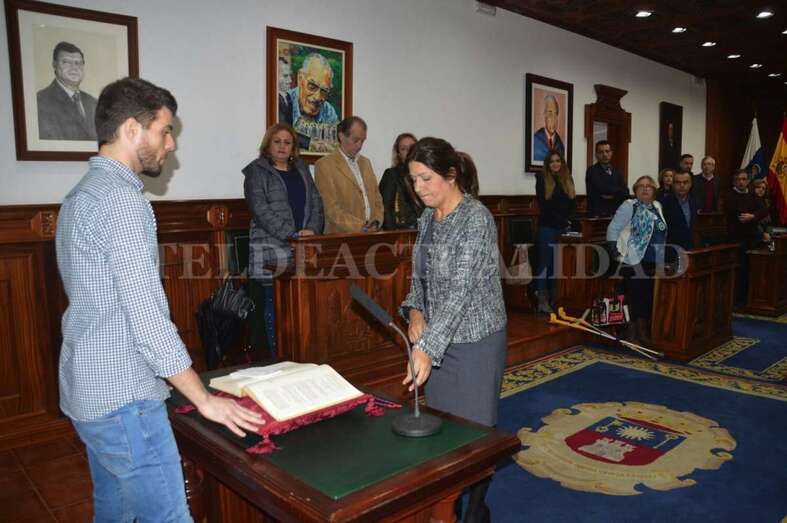 Hernández –a quien la Junta Electoral Central concedía las credenciales como edil hace tan solo unos días, el pasado 30 de enero– prometió su cargo al comienzo de la sesión. Lo hizo de forma solemne, aunque por "imperativo legal". En una mesa, con la medalla de la Corporación al cuello y con una mano sobre la Constitución, mirando de frente a la alcaldesa Carmen Hernández y al resto de quienes serán sus nuevos compañeros en el hemiciclo teldense.